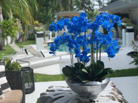 Avenue bowl with blue Phalaenopsis orchids