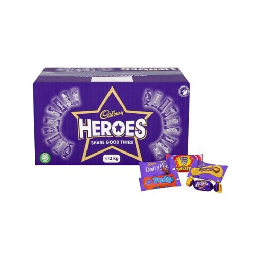 Cadbury Heroes Bulk Sharing Box This 2 kg Cadbury Heroes Chocolate Box is an excellent gift for Christmas, birthdays or any other occasion. Enjoy this assortment of delicious Cadbury chocolates and toffees, made with cocoa beans that are sourced through the Cocoa Life Sustainability Program.